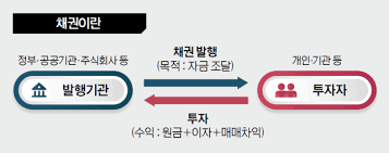 정의: 기업이나 정부가 투자자로부터 자금을 빌리는 대가로 발행하는 일종의 '차용증서'입니다. 일정 기간 후 원금과 이자를 지급합니다.